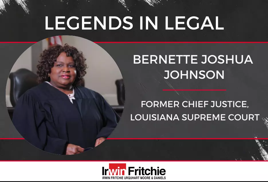 Legends in Legal - Justice Bernette Joshua JohnsonIrwin Fritchie could not be more excited to say, for our inaugural “Legends in Legal” article celebrating African American legal leaders, we had the great pleasure of interviewing Former Louisiana Supreme Court Chief Justice, Bernette Joshua Johnson.