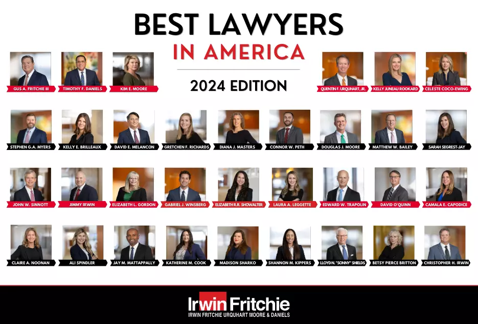 Irwin Fritchie Celebrates 33 Attorneys Recognized in 2024 Edition of Best Lawyers in AmericaIrwin Fritchie is proud to announce that 33 attorneys have been recognized in the 2024 Edition of Best Lawyers® in both the New Orleans and Baton Rouge offices.