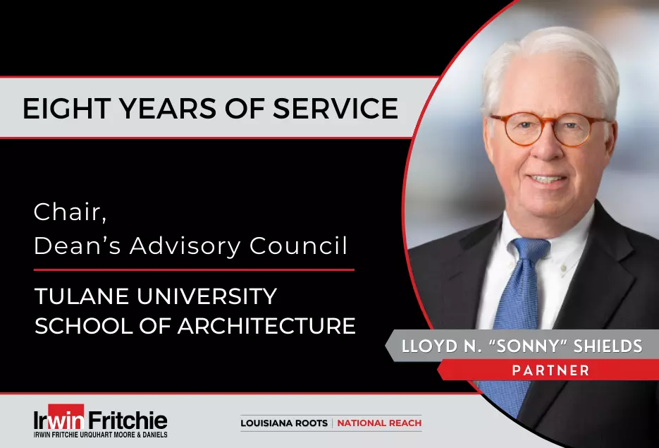 Sonny Shields Recognized by Tulane School of Architecture for Eight Years of Service as Chair of the Dean's Advisory CouncilFor the past eight years, Irwin Fritchie Partner, Lloyd N. "Sonny" Shields, has volunteered his time to his alma mater as Chair of the Dean's Advisory Council (DAC) at the Tulane University School of Architecture (TuSA). To commemorate Sonny's time as DAC Chair, Dean Alday penned a letter in the 2023 edition of NewZine – TuSA's annual publication – affectionately titled, "Thank you, Sonny Shields."