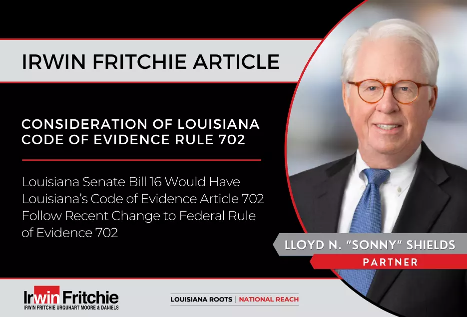 Consideration of Louisiana Code of Evidence Rule 702: Modification to Parallel Changed Federal Rule of Evidence 702 – Louisiana Senate Bill 16Louisiana Code of Evidence Article 702 is the subject of pre-filed Senate Bill SB16, which (as of this writing) has passed the Senate and awaits House action. The bill, if passed, will bring Louisiana Code of Evidence Article 702 in parallel with the new Federal Rule of Evidence 702.